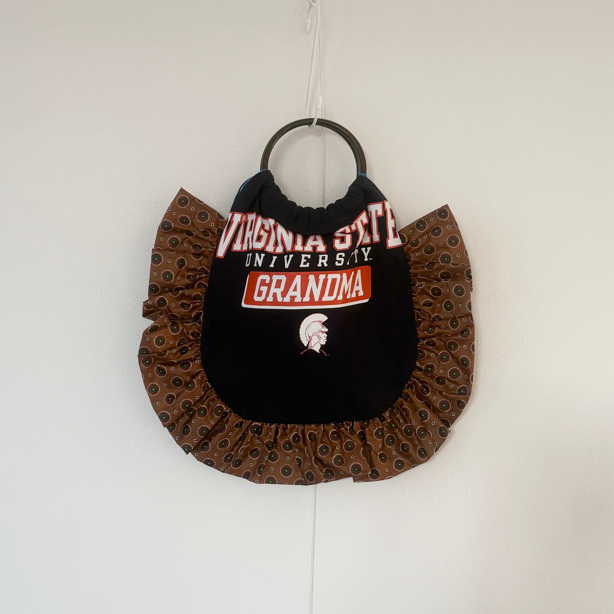 本体には海外の古着Tシャツ、フリル部分には傘生地や特殊生地を使用。