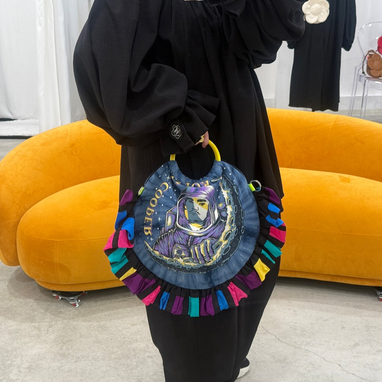 フリルには古着のスキーウェアやナイロンブルゾンを解き、