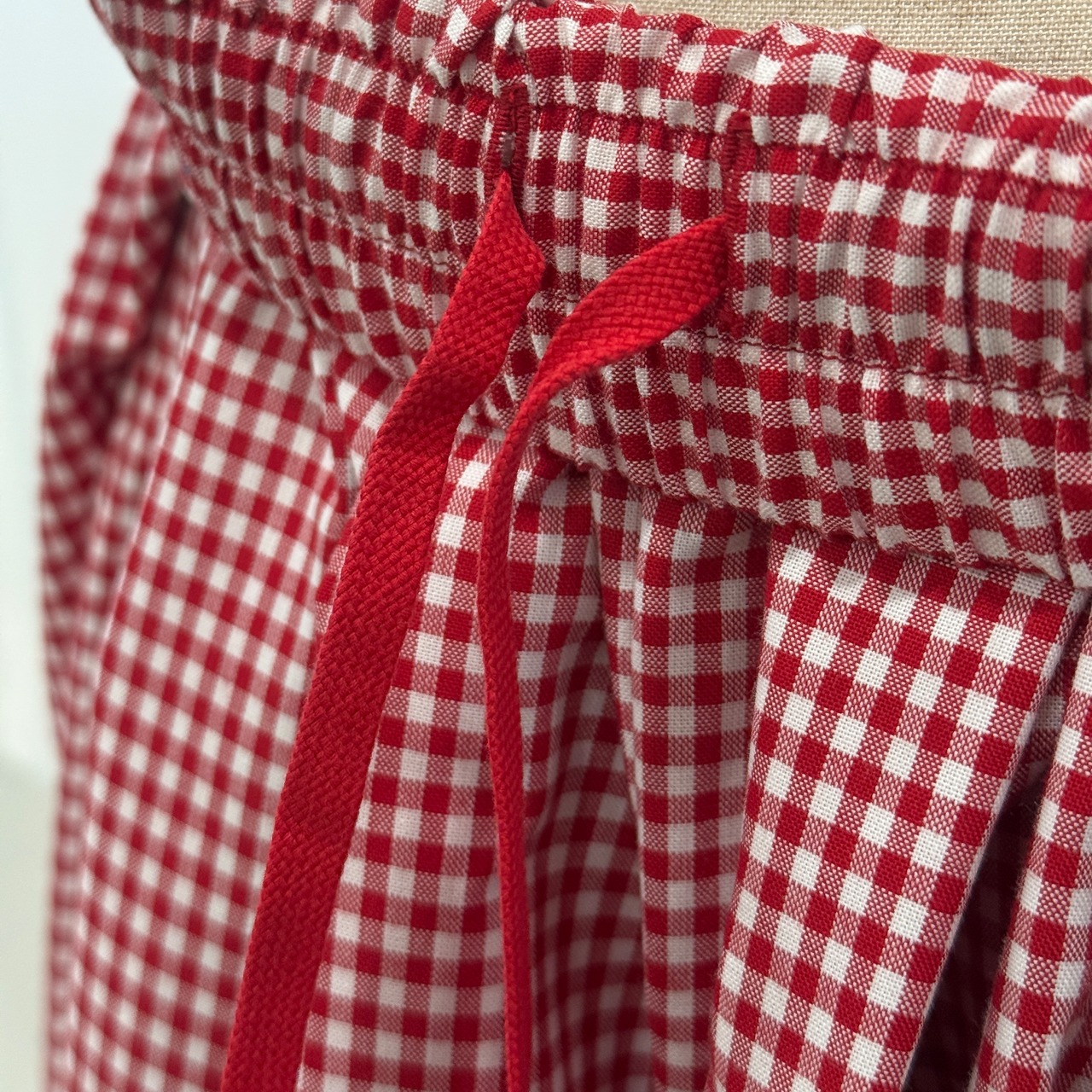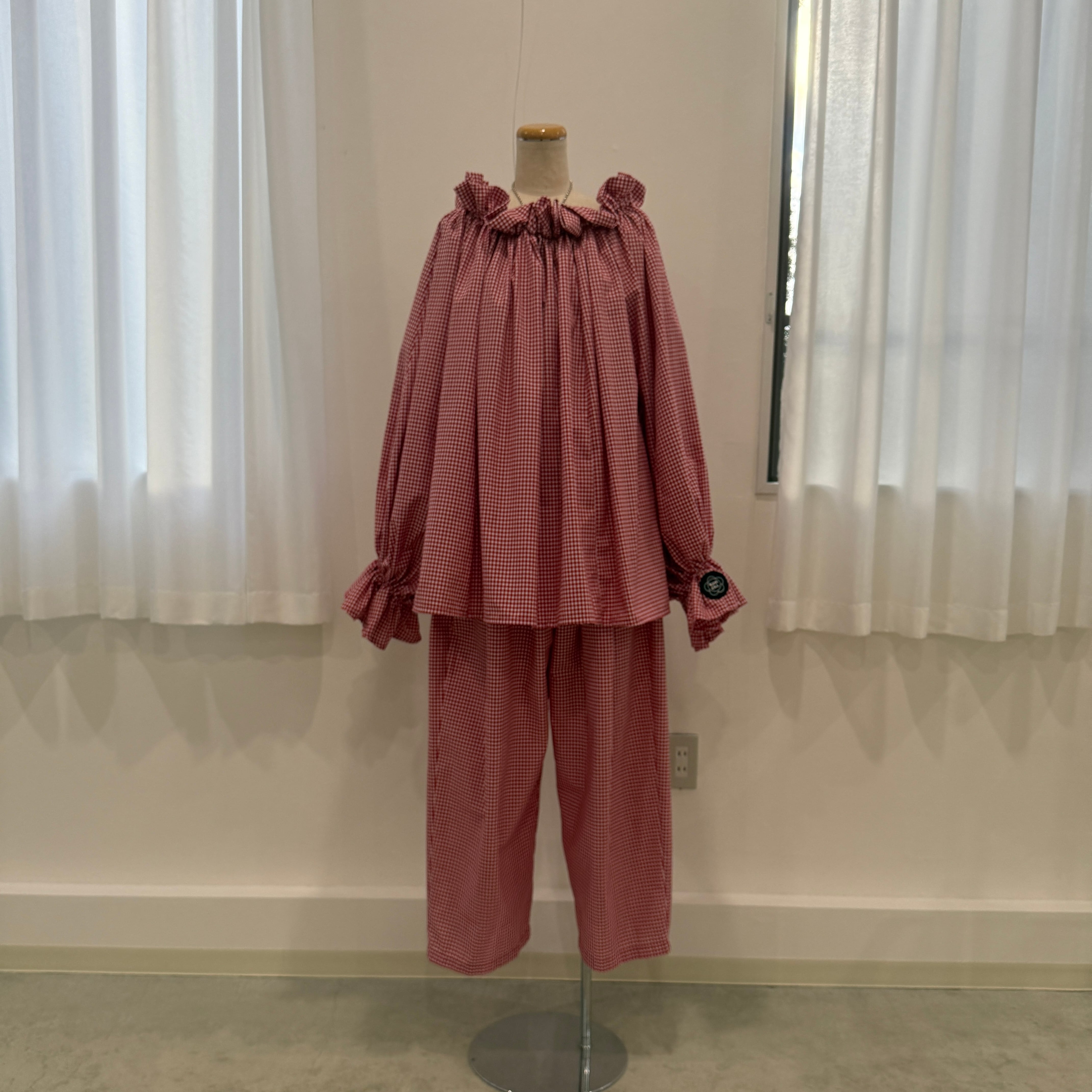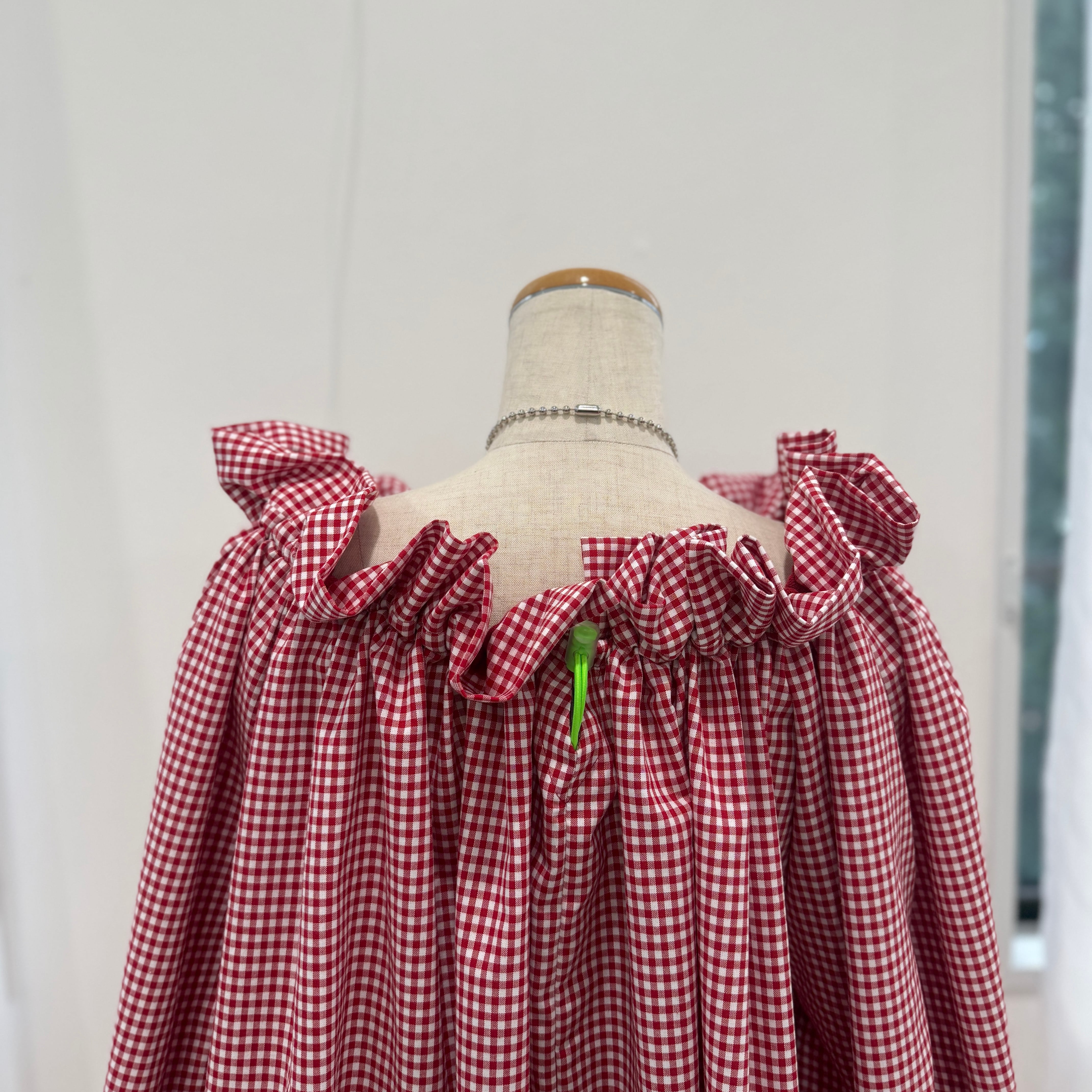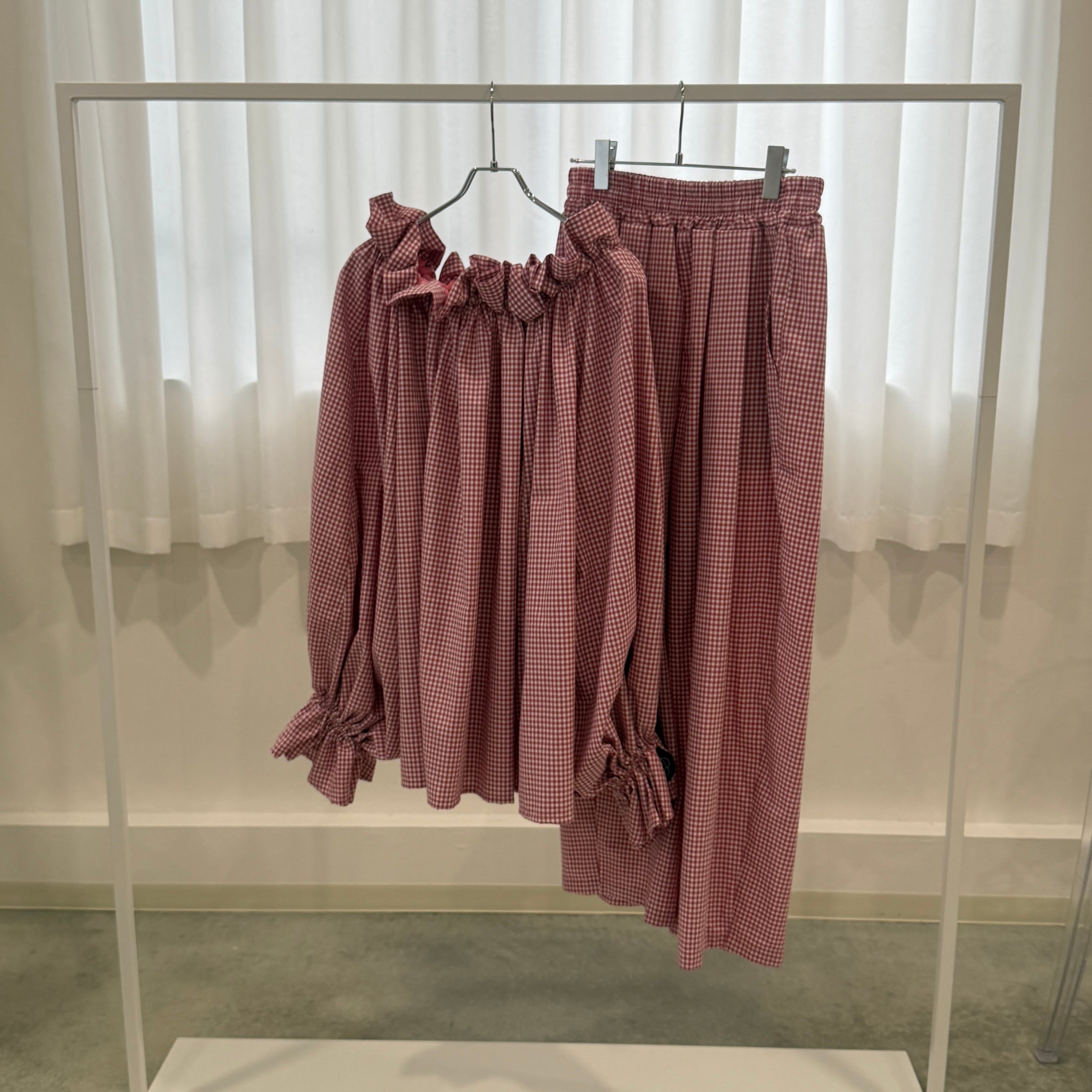 ギンガムよりも生地に落ち感があり、ボリュームが控えめな印象に。