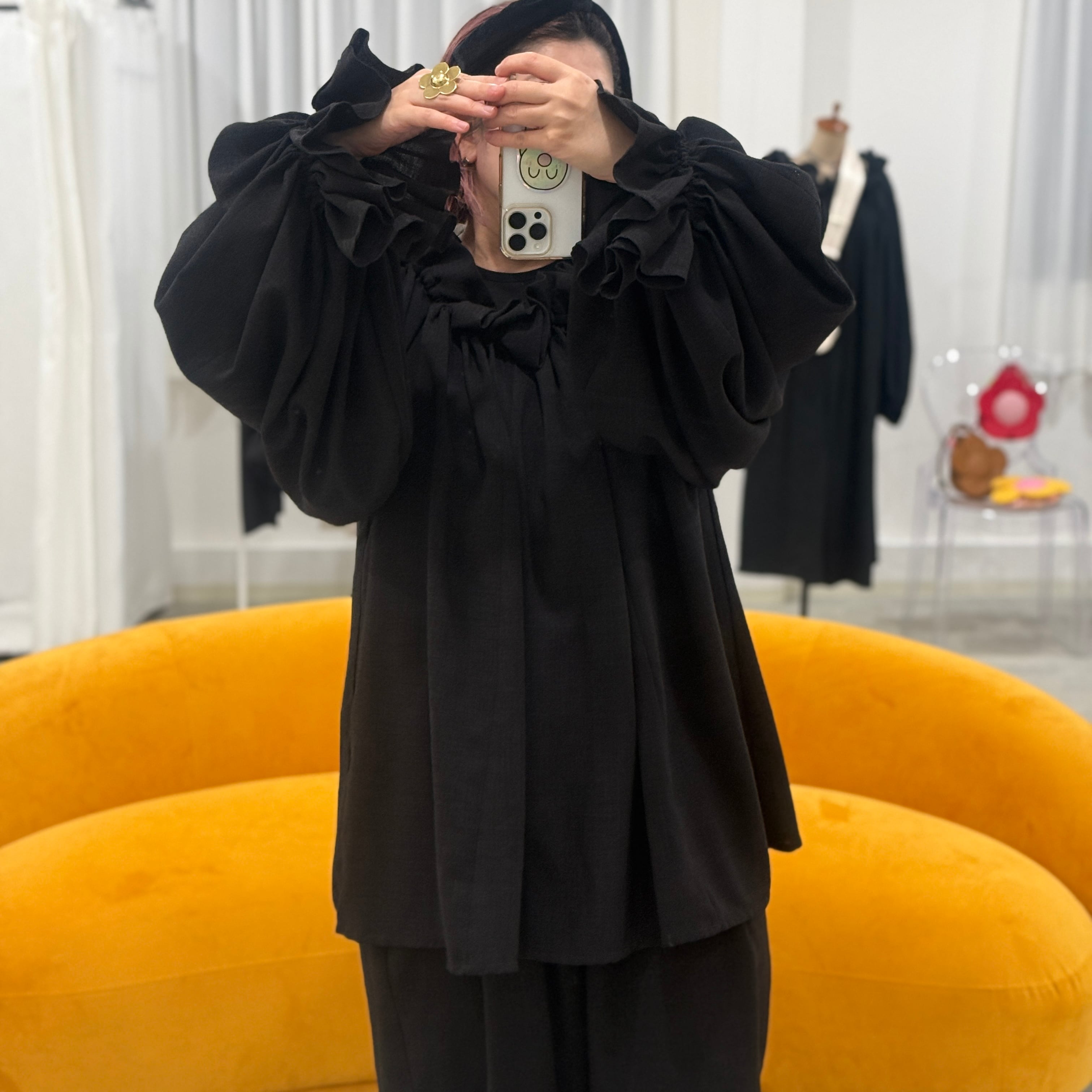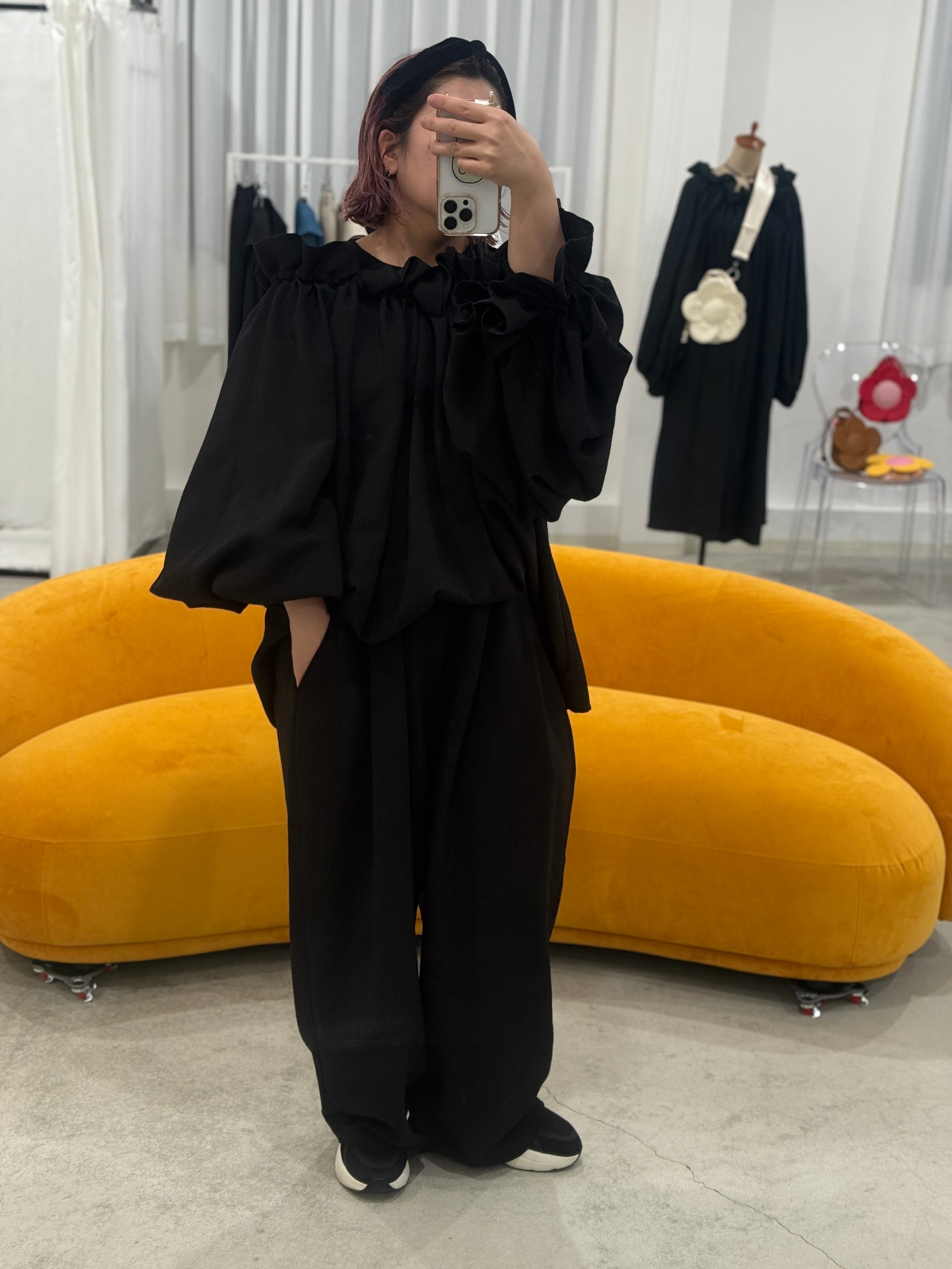 首元の開き具合やフリルのボリュームを好みに調整できます。