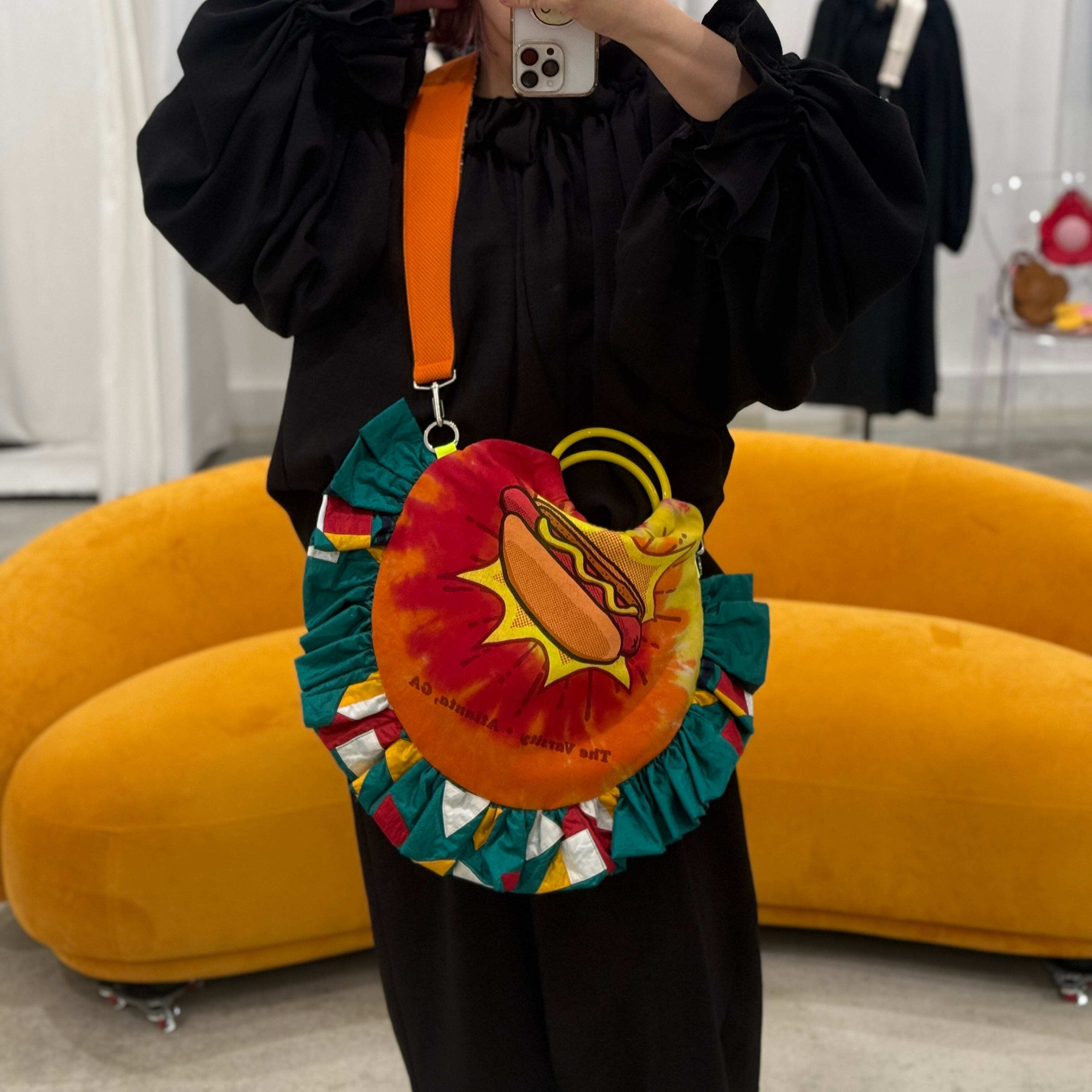 フリルには古着のスキーウェアやナイロンブルゾンを解き、