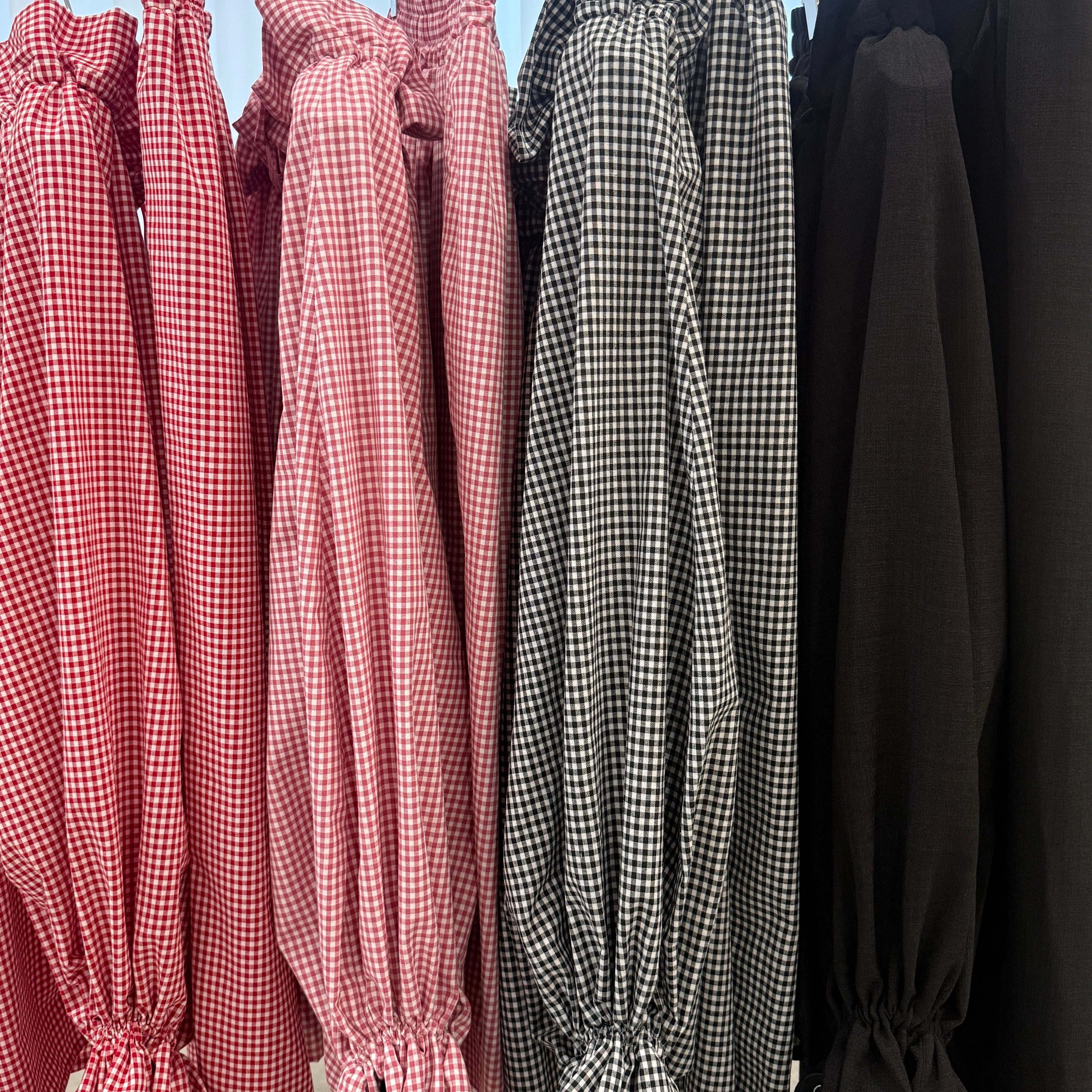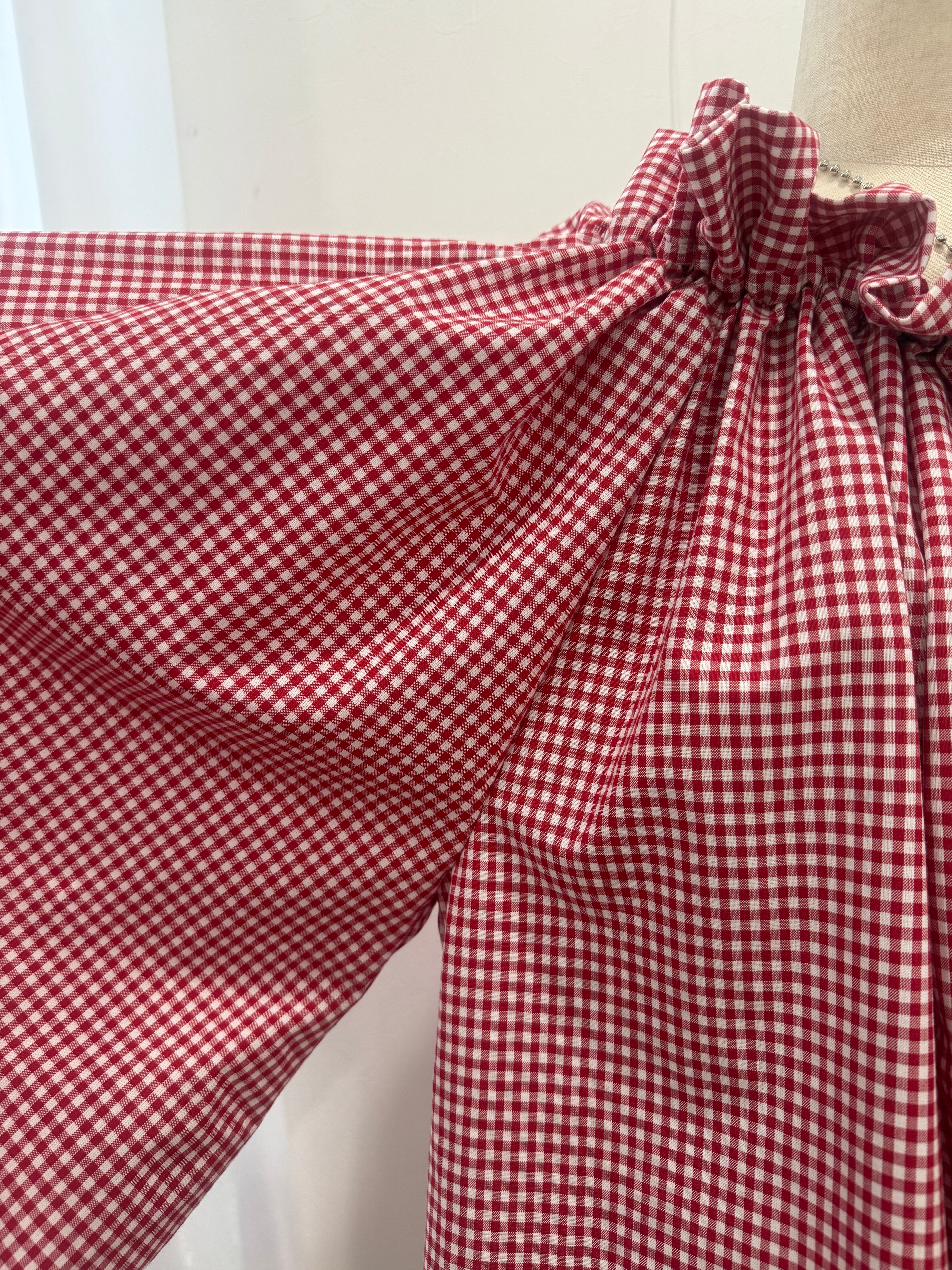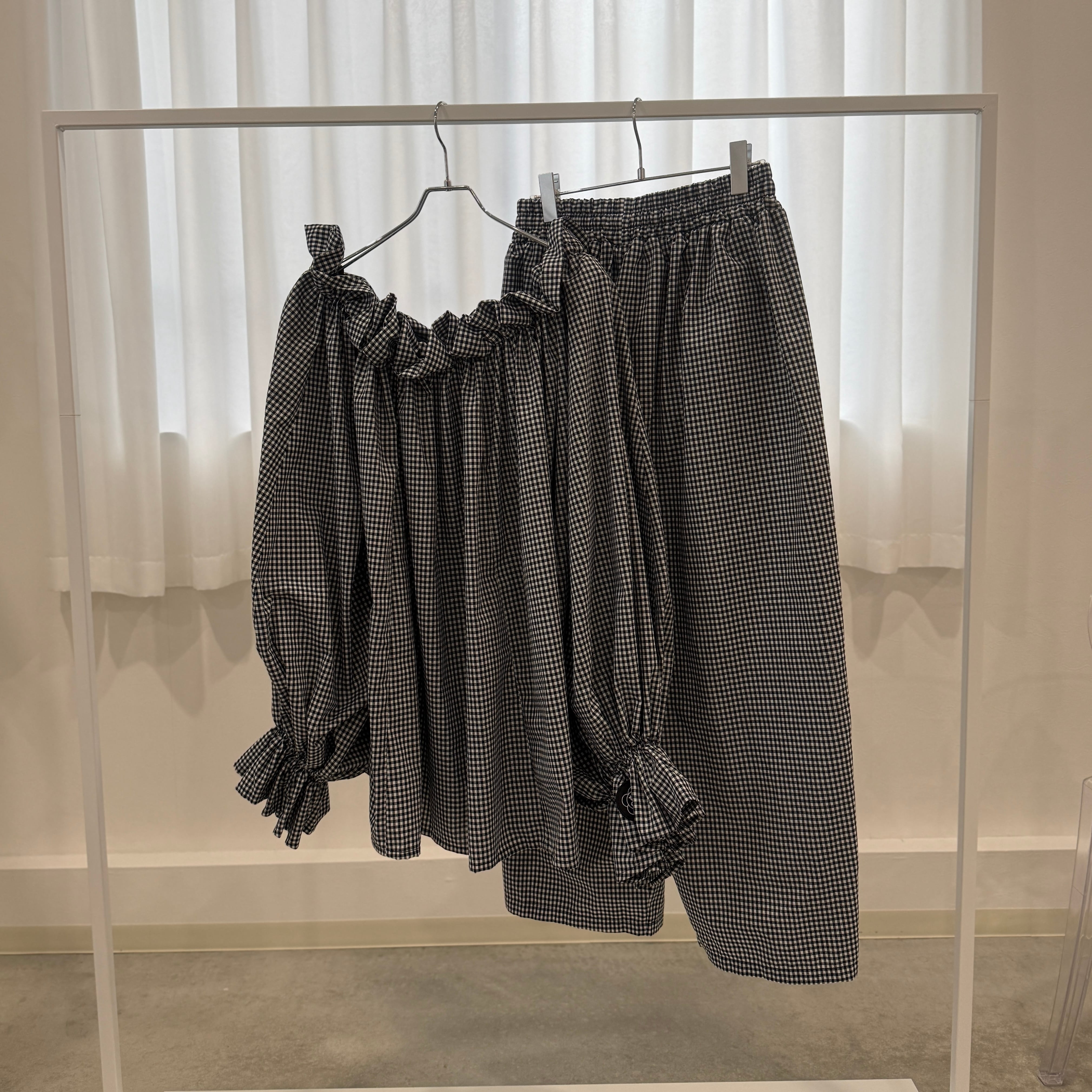 ギンガムよりも生地に落ち感があり、ボリュームが控えめな印象に。