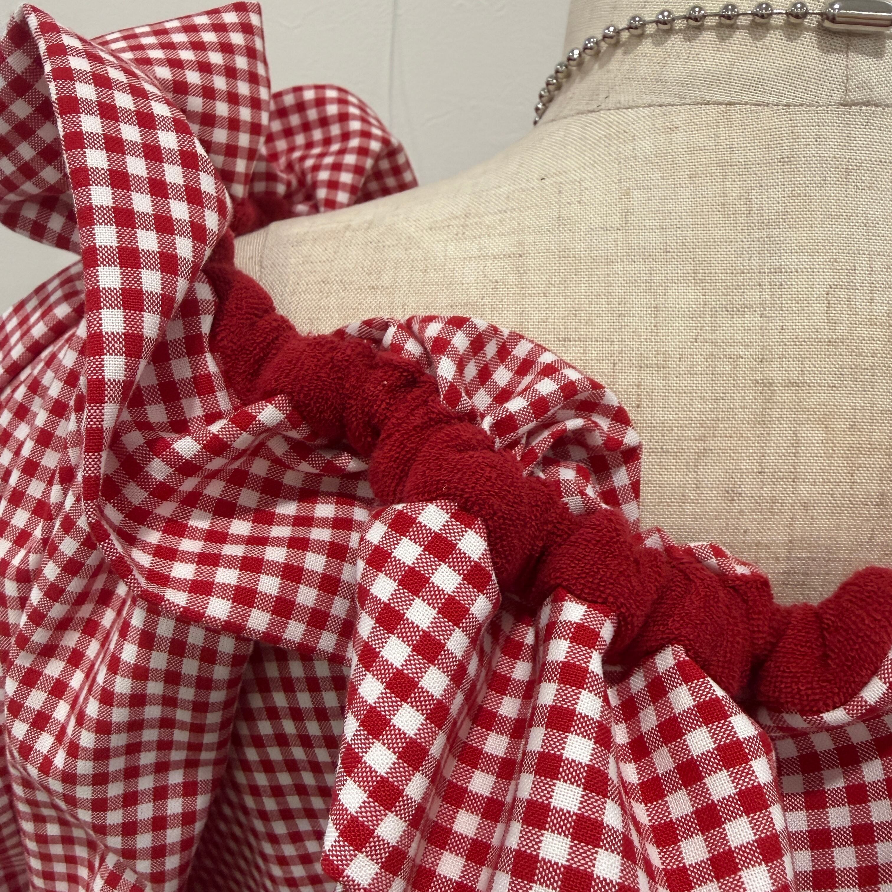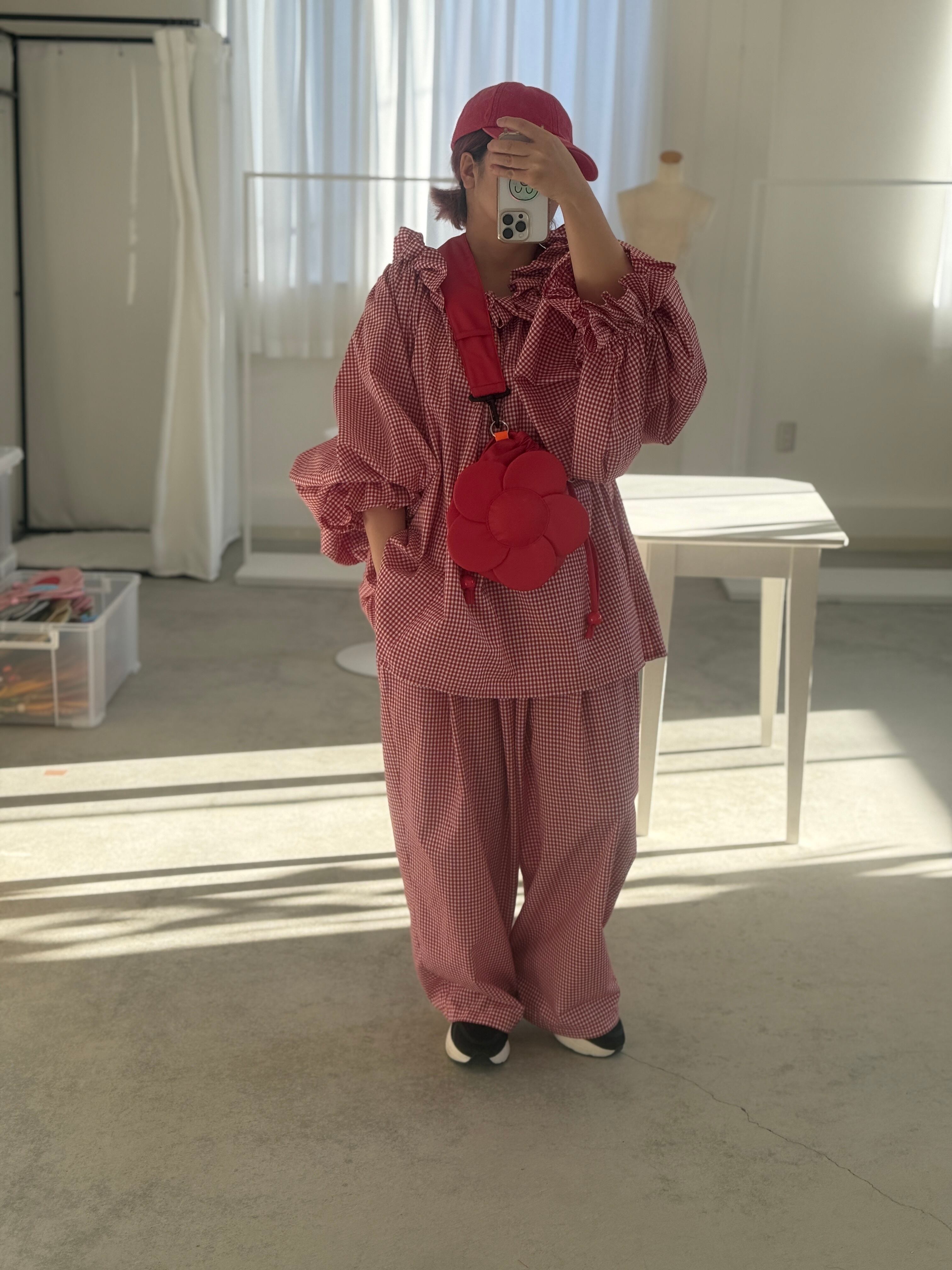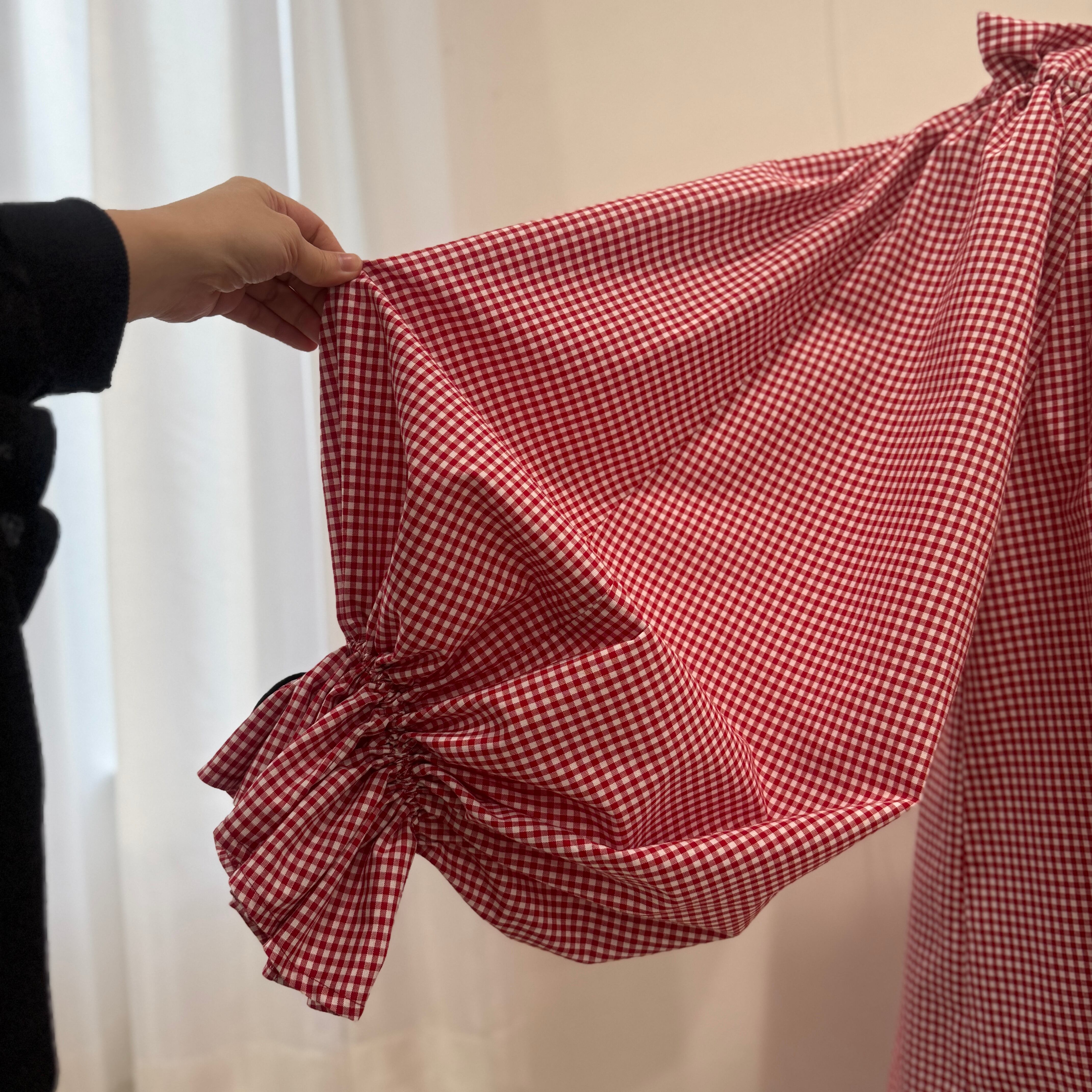 ギンガムよりも生地に落ち感があり、ボリュームが控えめな印象に。
